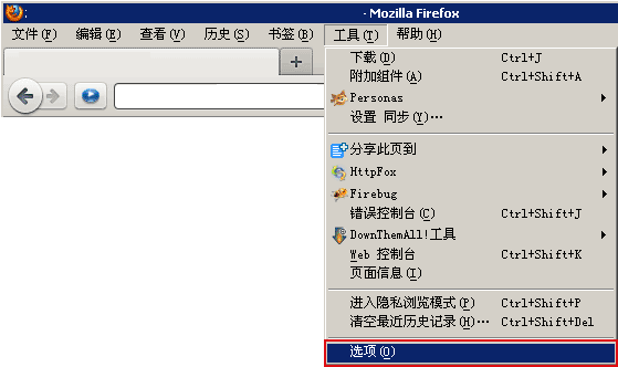 火狐(Firefox)浏览器设置主页的方法: 1)首先,打开浏览器上部菜单栏的“工具”栏,在下拉列表中选择“选项”,如下图所示: