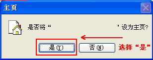 然后在弹出的“是否设为主页”的窗口里选择“是”即可。