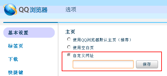 2)然后在打开的对话窗口中的主页栏的地址输入框中输入“https://wz1.0755120.xyz/”,然后点击窗口上方的“保存”按扭即可,如图所示: